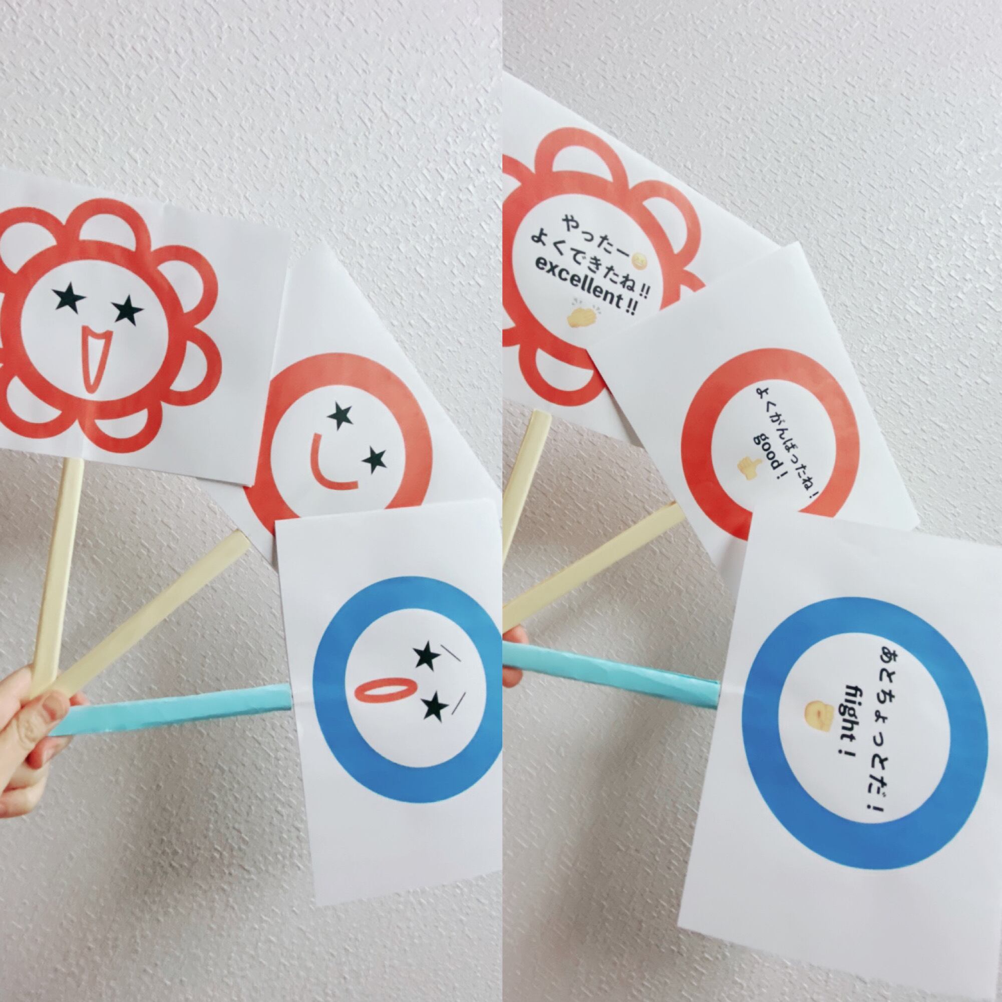 花マル(よくできたね!)赤マル(よくがんばった!)青マル(あとちょっと!)